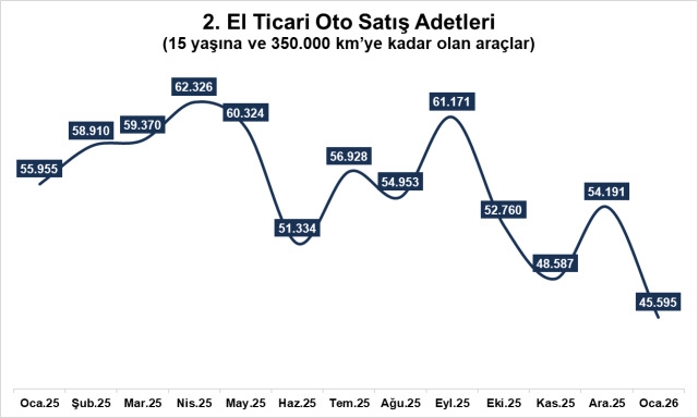 İkinci el otomobil pazarında Ocak ayında belirgin bir yavaşlama yaşandı. Ocak satış adetleri 300.410 olarak gerçekleşirken, Aralık ayına göre %20 düşüş kaydedildi. Geçen yılın aynı ayına kıyasla ise satışlar %10 geriledi. Ocak verisi, yıl sonu hareketliliğinin ardından yeni yılda piyasanın yeni araç kampanyalarının da etkisi ile daha temkinli bir denge arayışına girdiğine işaret ediyor. Aralık ayında satışlar 385.141 seviyesine çıkarak aylık bazda %6 artmış, bir önceki yıla göre ise %2 yükselmişti. Ocak’taki geri çekilme, özellikle yıl kapanışı sonrası normalleşme etkisinin satış adetlerine doğrudan yansıdığını gösteriyor.