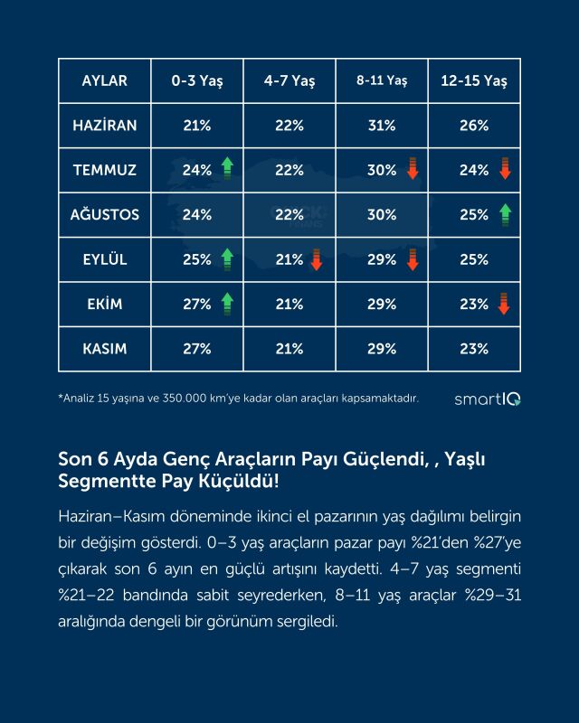 Genel görünüm, son 6 ayda pazarın genç araçlara doğru kaydığını gösteriyor.